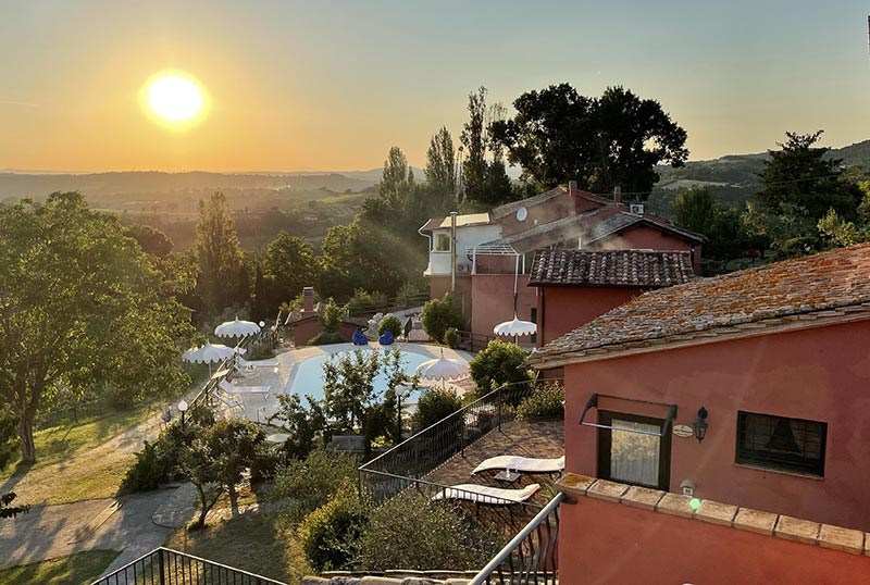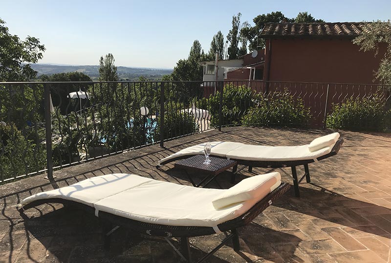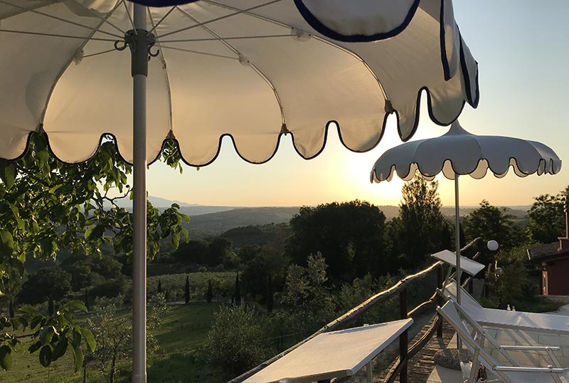 Dall’intero agriturismo si può ammirare il meraviglioso paesaggio collinare circostante, che dal borgo medievale di Poggio di Otricoli degrada fino al Tevere e continua a perdita d’occhio oltre ai Monti Cimini.