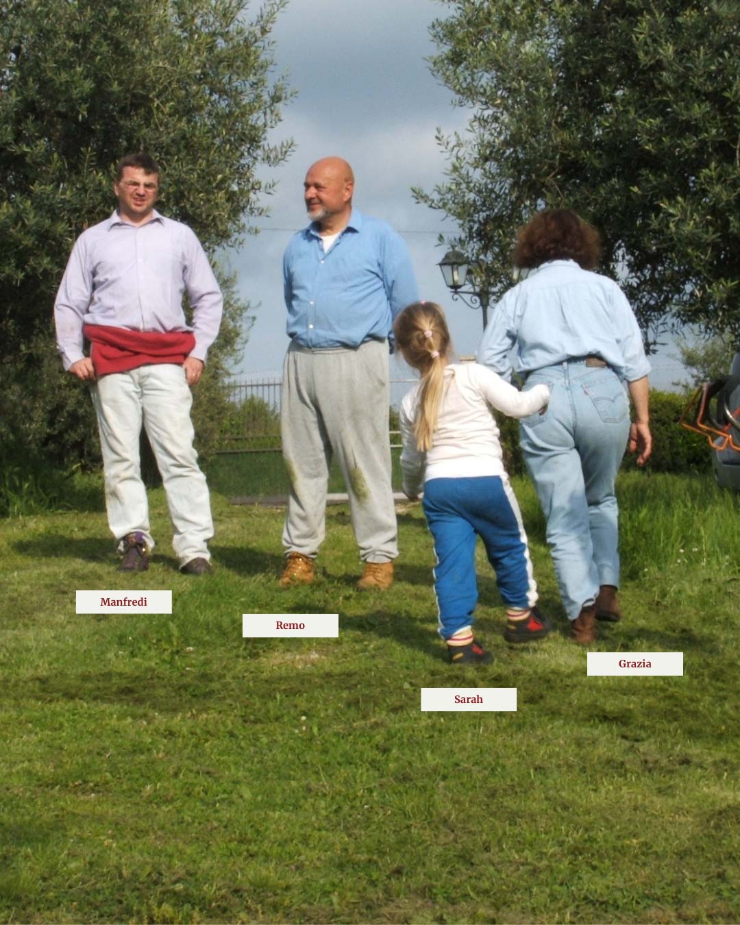 Le foto testimoniano dei momenti iniziali del nostro percorso: Deborah nell’uliveto, la famiglia una volta acquistata la struttura, e gli edifici rosa che, con amore e dedizione, sono diventati come li conosciamo oggi.