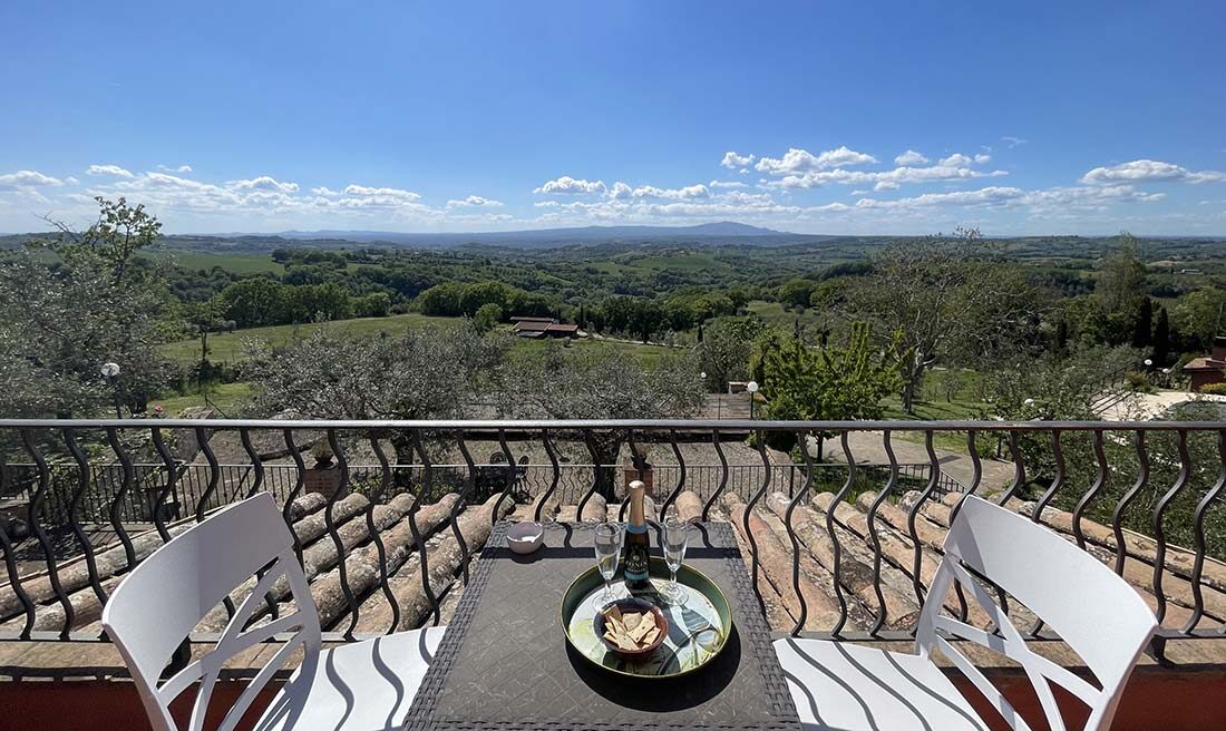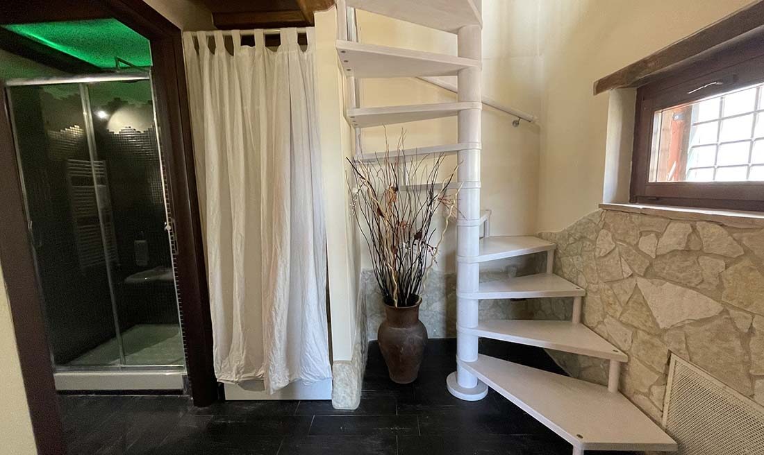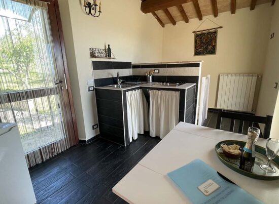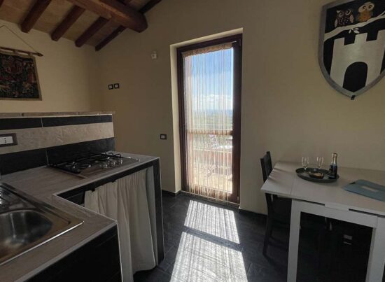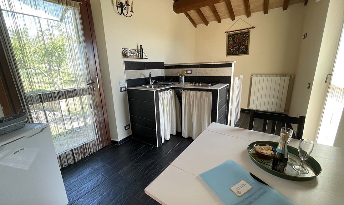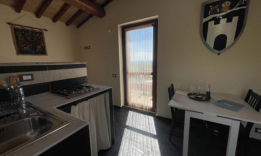 Si trova in un delizioso edificio indipendente vicino al Casale delle Contrade; è composto da una camera matrimoniale con letto king size, un bagno e una cucina al secondo piano con terrazzo con vista panoramica sulle colline umbre.